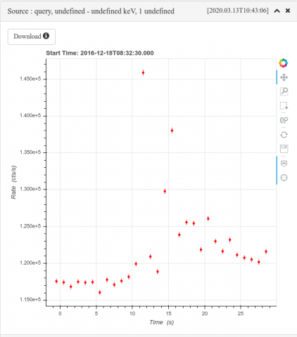 By clicking on the "Download" button, you have a possibility to download the lightcurve in FITS and ROOT format for further analysis.